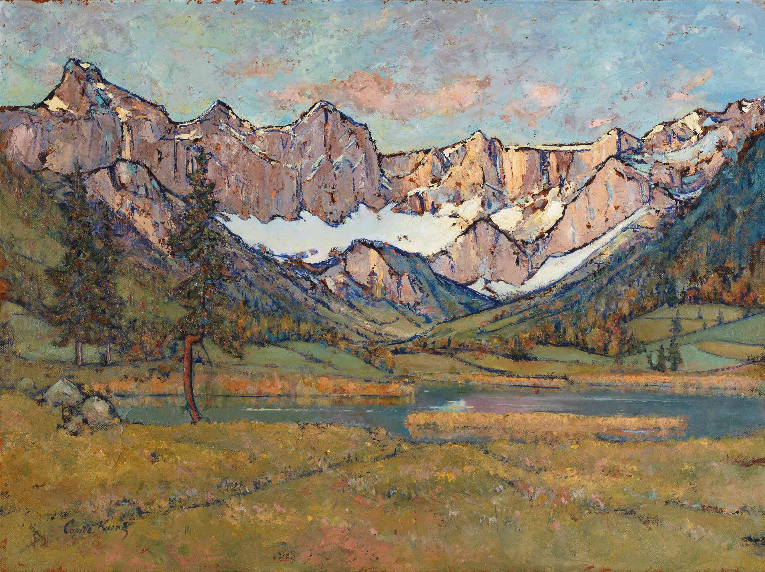 Der Katalog zur Ausstellung „Aufbruch in die Moderne?“ im Universalmuseum Joanneum Graz fasst seine Biografie wie folgt zusammen und zeigte sein Ölbild „Morgendämmerung – Die Seiseralm in Südtirol“ (um 1925):
