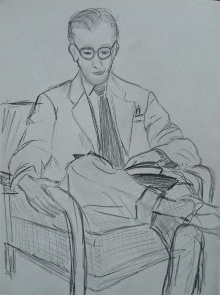 Die beiden haben sich auf der Rückseite des Katalogs gegenseitig beim Lesen gezeichnet – er sie mit recht zaghaften Strichen, während sie ihn schon gut erkennbar skizzierte und früh ihr Talent erkennen ließ…