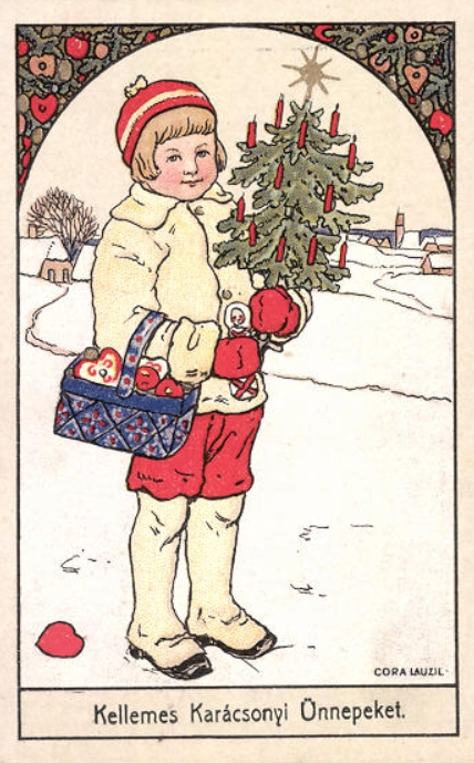Weihnachtskarte von Cora Lauzil, verschickt am 22.XII.1928